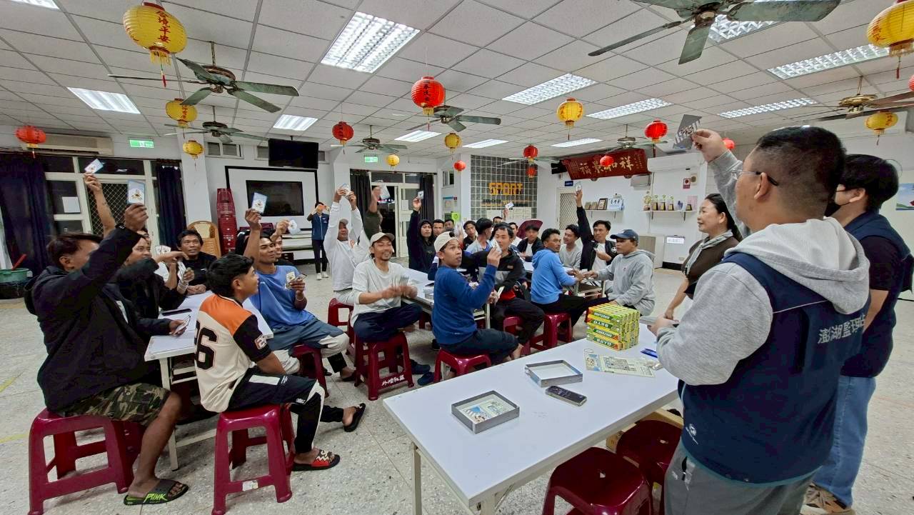交通部公路局高雄區監理所首創推出全臺第一款專為「行人」及「駕駛」量身設計的思考與策略型桌遊-「道路生存戰」,這是一款能夠藉由遊戲的人際互動,傳遞交通安全教育的桌遊遊戲。 推行至今澎湖監理站已進行多場推廣,包含各年齡層民眾,如樂齡中心長者及各級學校;今年度首次將活動推展給漁工及移工朋友們,首場活動於3月28日來到以漁業為主要經濟來源的西嶼鄉外垵村,吸引許多印尼籍漁工在週六晚間前來參與。 「道路生存戰」是一款透過桌遊與人際互動,傳遞交通安全教育的遊戲。遊戲中,「幸福公鹿」是維護全民用路安全的守護者,若能正確回答牌卡畫面的交通安全觀念,就能獲得能量幣1枚,最後得到最多能量幣者可獲得精美宣導品一份。更特別的是,這款桌遊可按對象不同而有不同的玩法,本次漁工參與相當踴躍,大家都使出渾身解數搶答,回答一點也不馬虎,透過通譯志工莉蓮的翻譯,正確率相當高,也馬上銘讓所有參與的漁工們能充分了解情境圖卡表達的各種交通風險及正確概念,不只讓大家在工作辛勞之餘獲得紓壓,更重要的是獲取正確的交通安全概念,保障自己也保護他人。 澎湖站陳站長逸裕表示,道路生存戰桌遊不只富饒樂趣,更可將生硬不易懂的法規情境以圖卡深入淺出帶給各個族群及年齡層民眾,是一款不分國籍且老少咸宜的桌遊,本站將持續推廣,一同共創更美好交通環境。